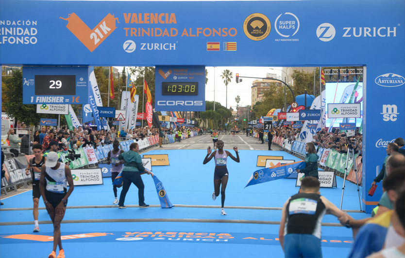 El Medio Maratón Valencia Trinidad Alfonso Zurich 2025 volvió a confirmar su fama como una de las carreras más rápidas del mundo, incluso en condiciones meteorológicas adversas. La keniana Agnes Jebet Ngetich logró la mejor marca mundial del año y la tercera mejor de la historia con un impresionante 1:03:08, mientras que el etíope Yomif Kejelcha se impuso en categoría masculina con 58:02.