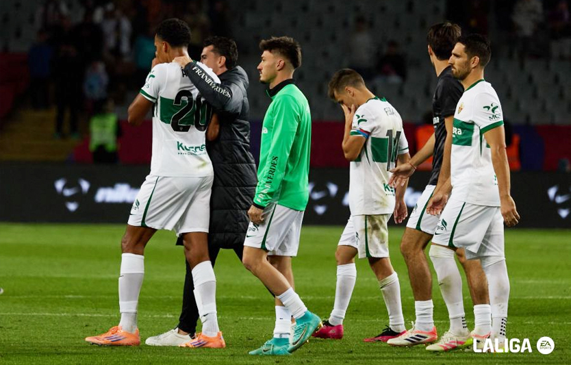 El Elche CF firmó una derrota con orgullo (3-1) en su visita al FC Barcelona, en un partido en el que los de Eder Sarabia mostraron carácter pese a verse superados por la calidad del conjunto azulgrana. En el Estadio Olímpico Lluís Companys, el equipo franjiverde resistió los golpes iniciales y peleó hasta el final con alma y determinación.