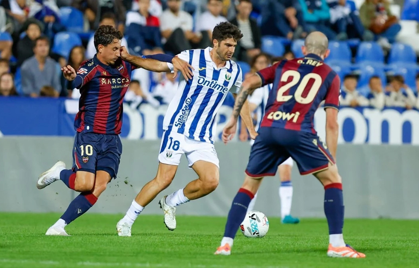 El conjunto madrileño comenzó mejor el encuentro y se adelantó muy pronto, en el minuto 4, gracias a un tanto de Álex Millán, que aprovechó un rechace en el área. El Levante reaccionó rápido con el gol del donostiarra Olasagasti, que igualó el marcador tras un buen disparo desde la frontal. Sin embargo, el Leganés volvió a tomar ventaja con un potente cabezazo de Figueredo en un saque de esquina, cerrando una primera mitad con dominio local.