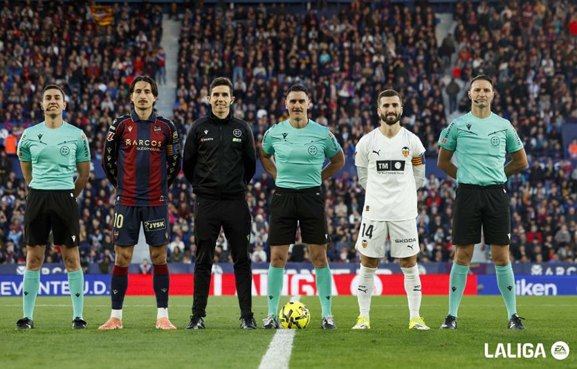 La primera mitad fue tensa y con escasas ocasiones. El Levante dominó territorialmente y generó la acción más peligrosa a balón parado. Pablo Martínez colgó una falta lateral que Iván Romero cabeceó con peligro, obligando a Stole Dimitrievski a intervenir con reflejos. Sin embargo, más allá de esa jugada, el encuentro transcurrió sin grandes sobresaltos. El Valencia no logró conectar con Pepelu ni Ugrinic, y sus intentos al contragolpe no encontraron portería.