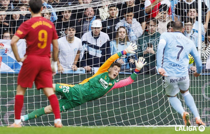 Corberán apostó por una defensa de cinco para dar continuidad al planteamiento empleado ante el Atlético de Madrid, pero la solidez duró poco. A la media hora, una imprudencia de Foulquier dentro del área acabó en penalti y Borja Iglesias no perdonó desde los once metros para adelantar al Celta.